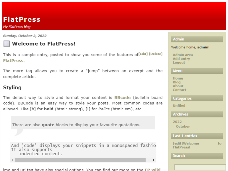 Es folgt noch etwas mehr Beispiel-Inhalt, der dir noch mehr FlatPress-Funktionen zeigt :)
